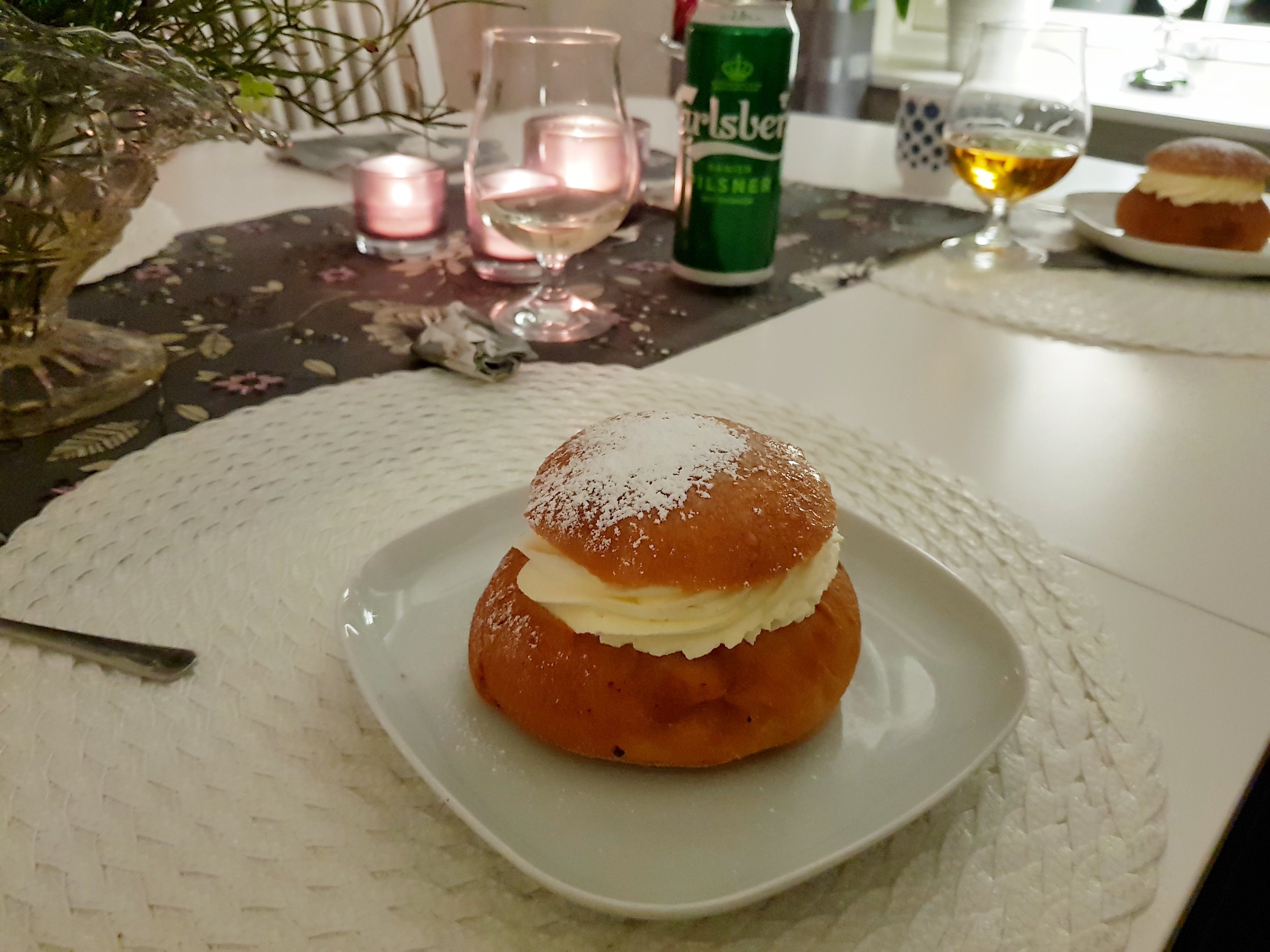 For dessert, we ate something called ”semla”. I think it’s most common in the north European countries like Sweden, Norway, Finland, and even Estonia? For those of you who don’t know what it is, it’s a kind of bun filled with almond paste and whipped cream. There are other fillings too but I think this is the most common. It’s very delicious!