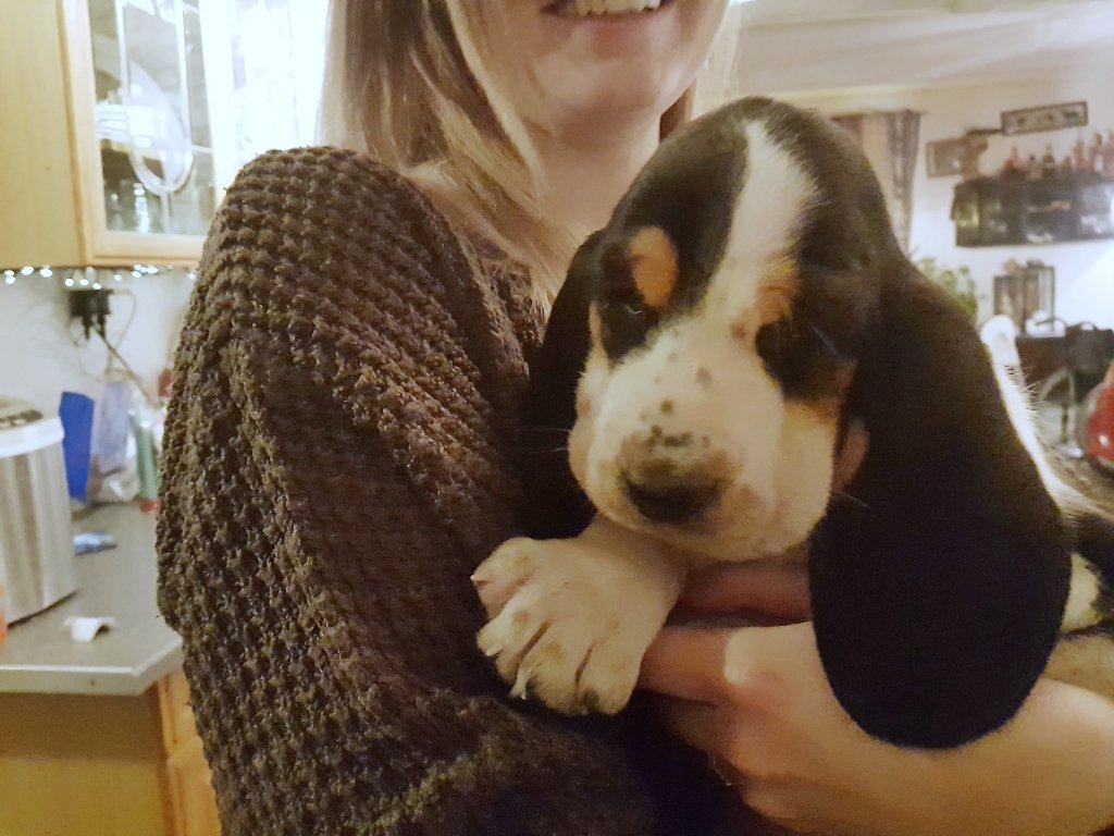we got to meet the cutest little puppies! A friend of mine and her mother owns a basset hound and about 7 weeks ago she got her puppies!