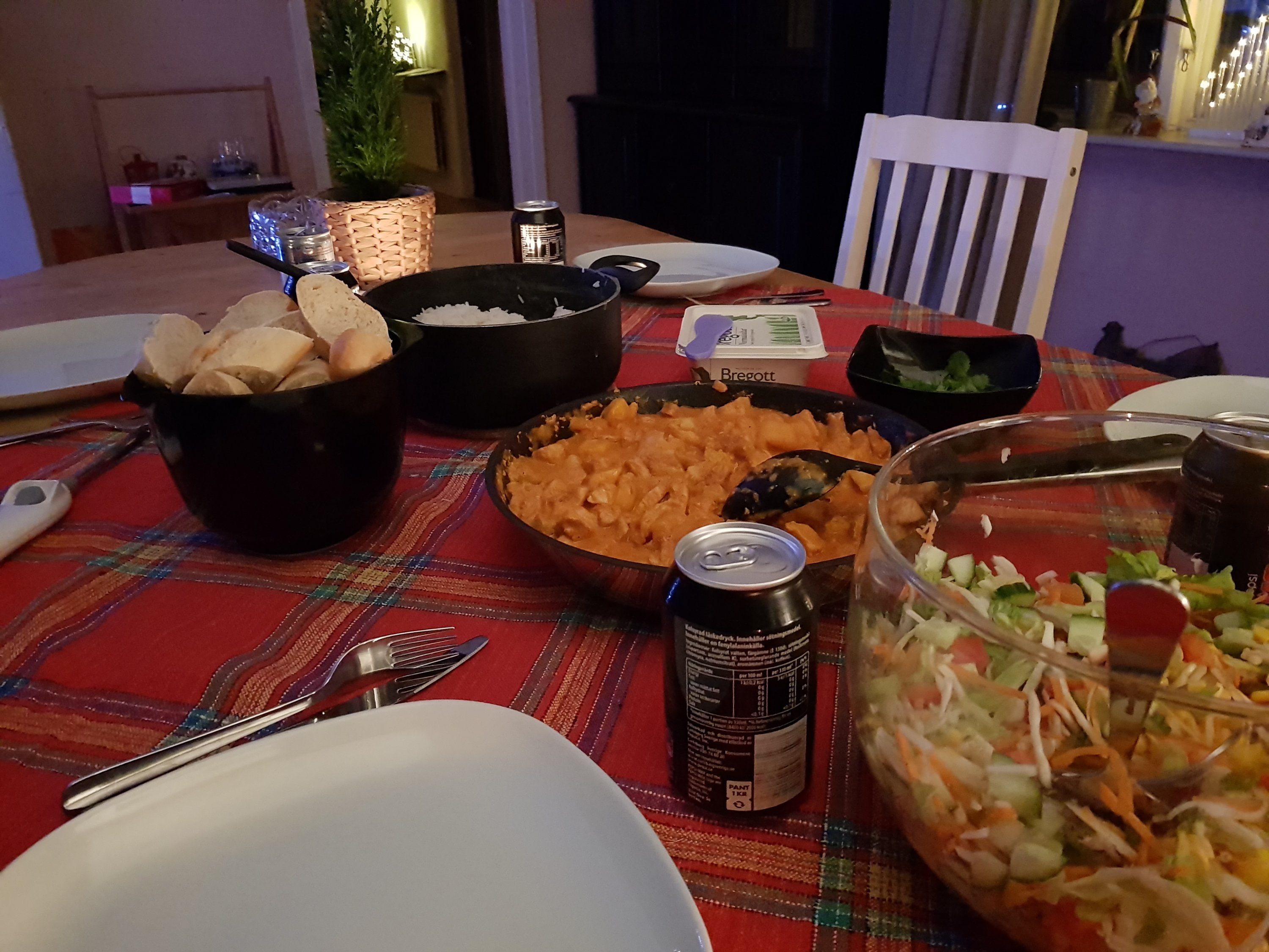 Hello my friends! Today me and Kevin went to our friend Jocke to celebrate his mum Tina as it is her birthday today! Jocke have made dinner for all of us. It was chicken with mango served with rice. It tasted really good so if you want to try it out here you have the recipe!