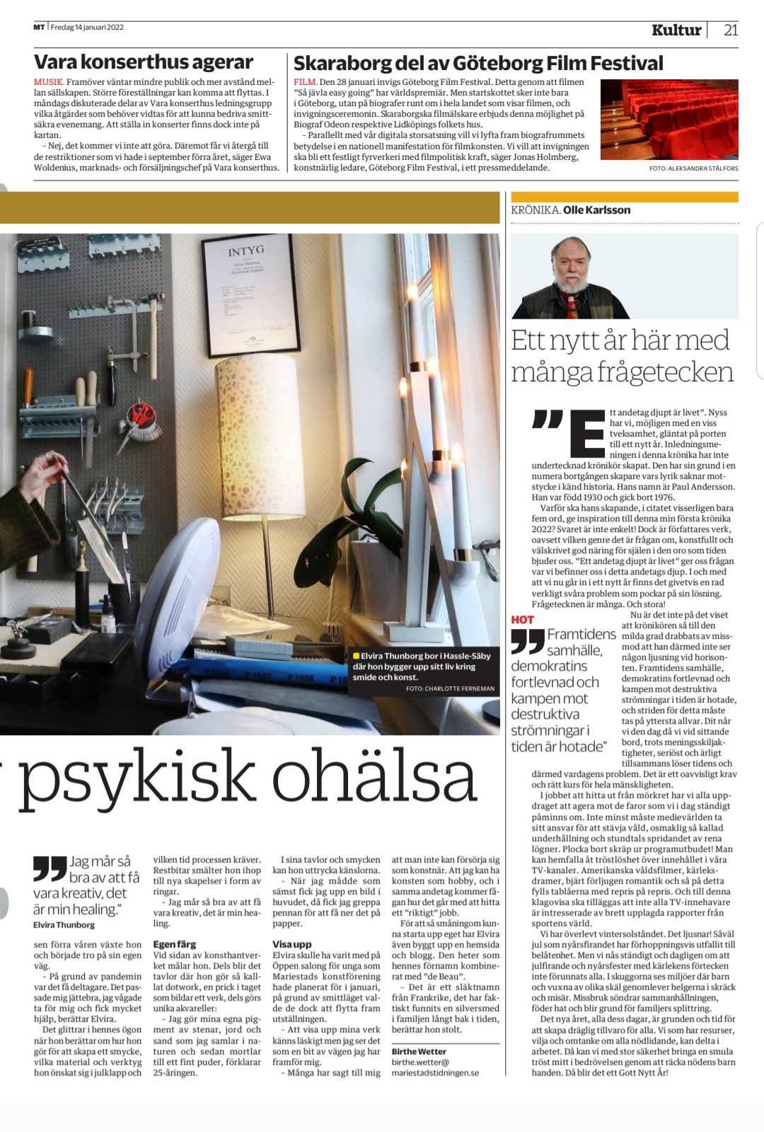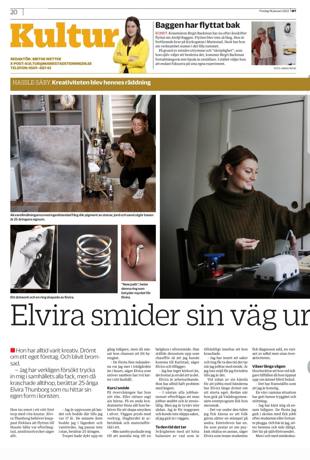 I fredags kom som sagt tidningsreportaget ut! Jag har varit himla nervös över att få läsa det och hur det kommer att tas emot. Jag går ju ut med en hel del (för mig) rättså privat information. Och som jag säger i artikeln har jag blivit bränd förut när jag har velat prata om bl.a psykisk ohälsa, arbetslöshet och diagnoser. Men jag känner ändå att jag står lite mera stabilt på fötterna nu än vad jag gjort tidigare när jag har försökt ”ta ton”. Jag jobbar ständigt på min ångest och vet hur jäklig den kan vara och vill därför hjälpa andra i samma situation om jag kan och kanske få någon där ute att känna sig mindre ensam då jag vet att jag kände mig som ett ”ufo” i andras ögon när jag mådde som sämst.