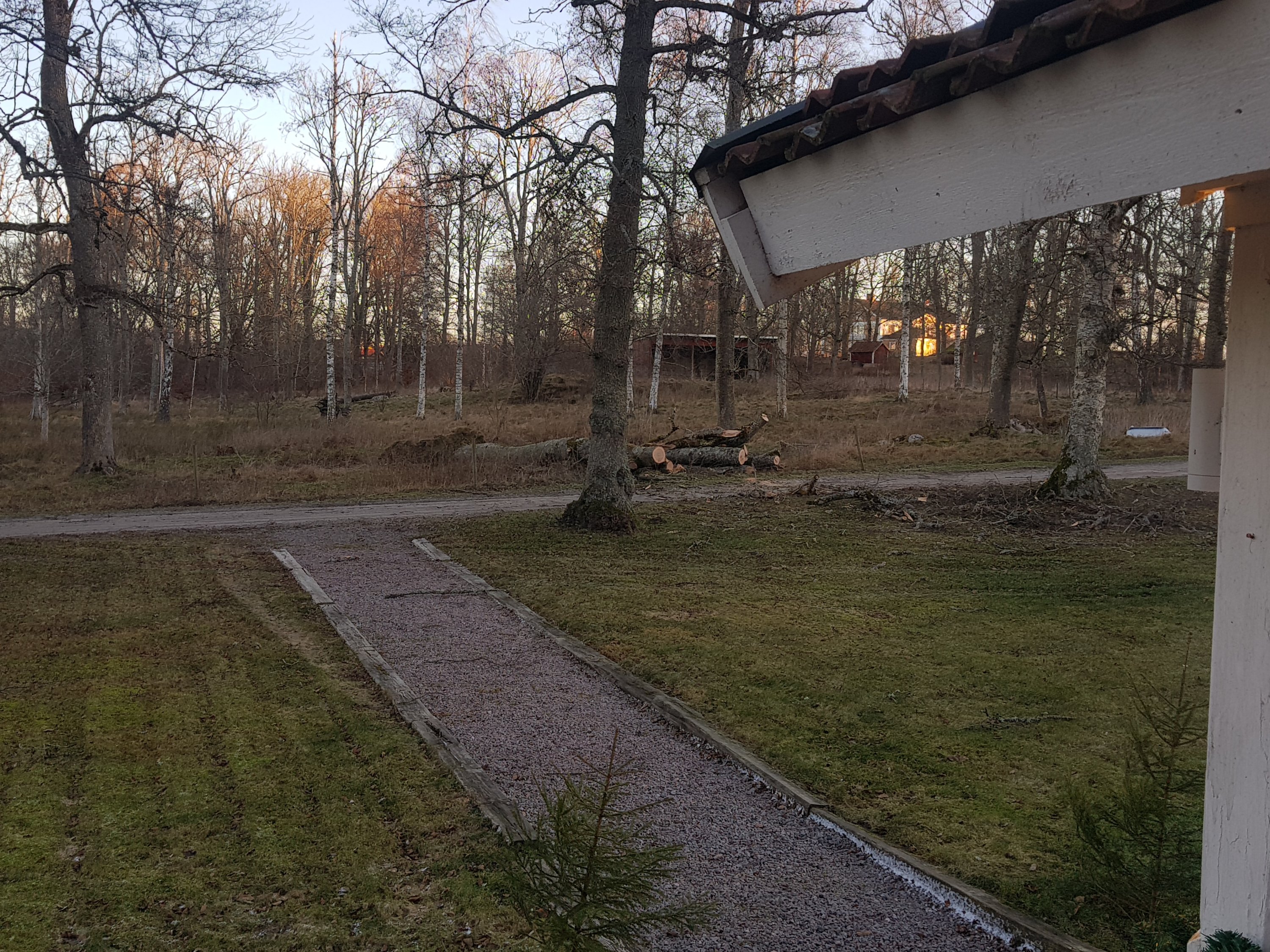 Eventually when the sun turned up and you got a clearer view of everything I saw a big oak tree that had fallen and were now laying across the road and into our garden so that people couldn’t drive through.