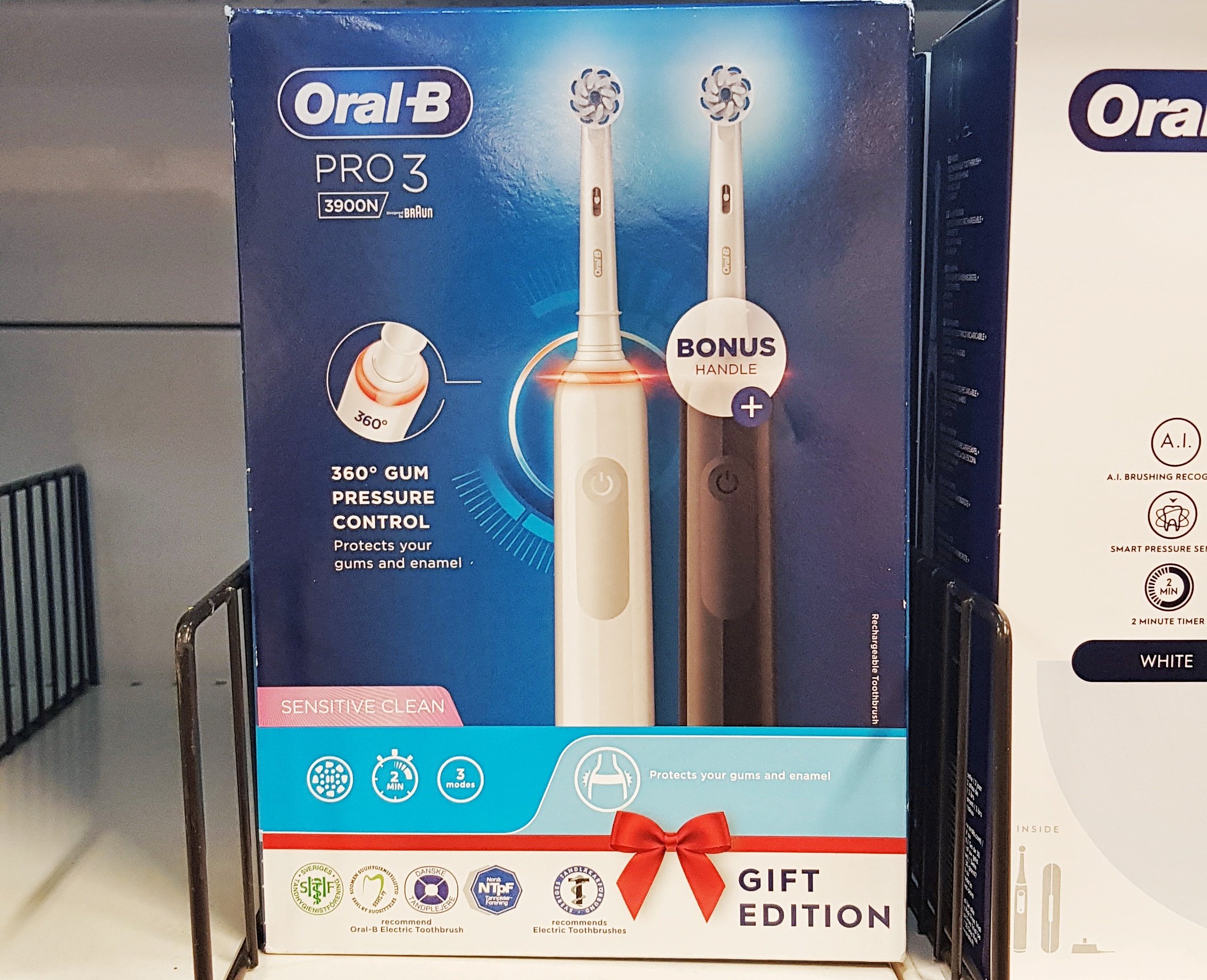 So…standing there watching mum decide which one to choose I began to think about having one myself…so I found this package in the picture and called Kevin for his opinion and the funny thing is that he was about to go and look for an electric toothbrush on his lunch break but realized that he didn’t have enough time so when I called and asked if we should buy one to each other, it was kind of the perfect moment 😉