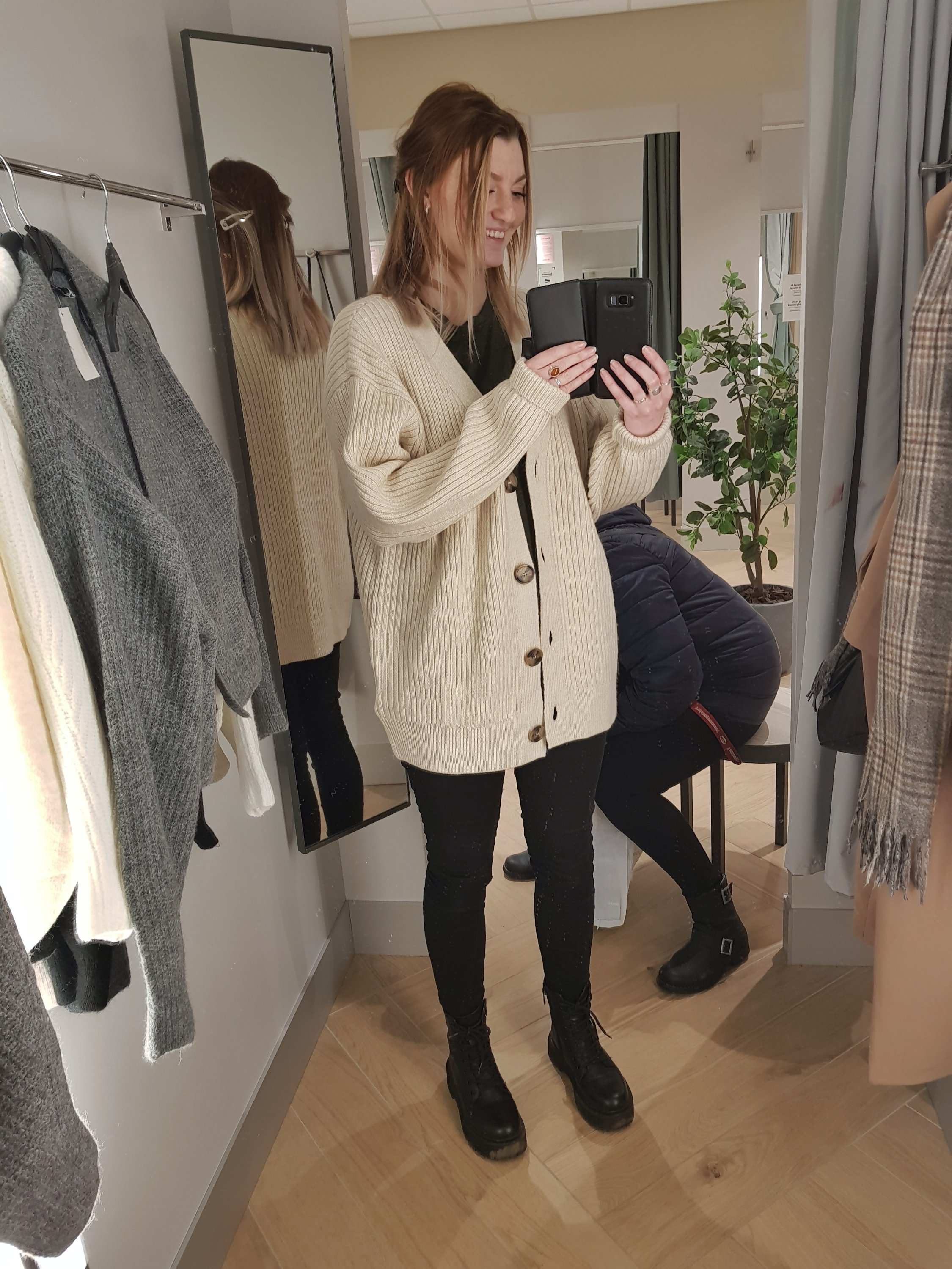 Then we continued our shopping and I tried on so many different knitted cardigans but didn’t feel fully comfortable in any of them so it ended with me not buying any of them instead but the toothbrush! But, I did order something to wear later that evening on the internet instead. What it is? I will show you on Saturday…speaking of not being comfortable…mum trying to hide behind my back when I was taking the photo 😅…