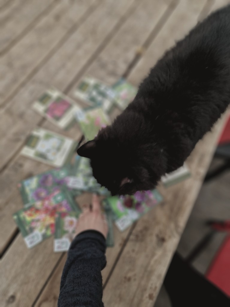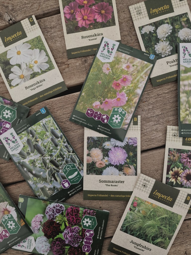 Detta var några av fröna som skulle sås. Jag tror 90% av alla fröpåsar var blommor…🫢