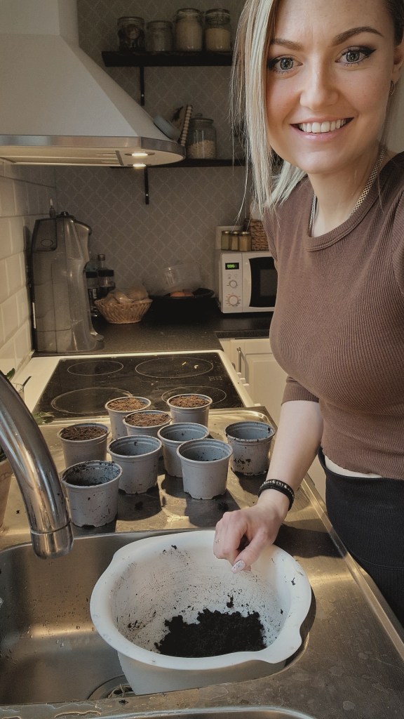 Ja som ni hör var det rätt mycket som skulle göras så det var fullt upp. Jag hade jättekul när jag fick börja sätta alla frön jag hade köpt på mig och jag längtade sååå till att få omplantera dom alla och få flytta ut dom i växthuset och i dom nya pallkragarna till uteplatsen.